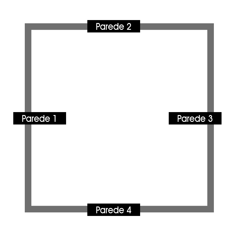 Localize a porta, janela e louças de seu banheiro nas paredes correspondentes de acordo com o diagrama abaixo.